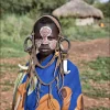 A tribe living on the east banks of the Omo, the Karo number about 1000. Tourists enjoy watching the Karo preparing themselves for a celebration or traditional dance when they decorate their bodies with chalk paint, often imitating the spotted plumage of Guinea Fowl. The Karo excel in face and torso paintings. Elaborate facemasks are created using locally found white chalk, yellow mineral rock, pulverized iron ore and black charcoal.