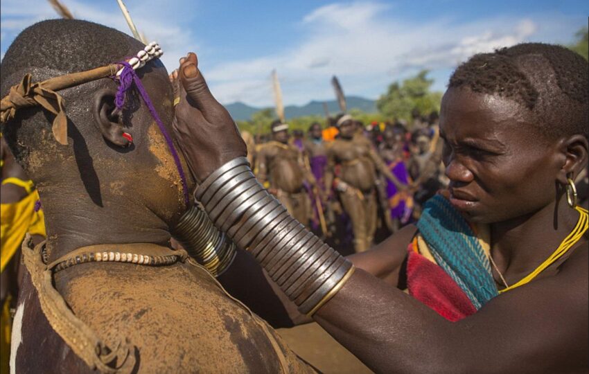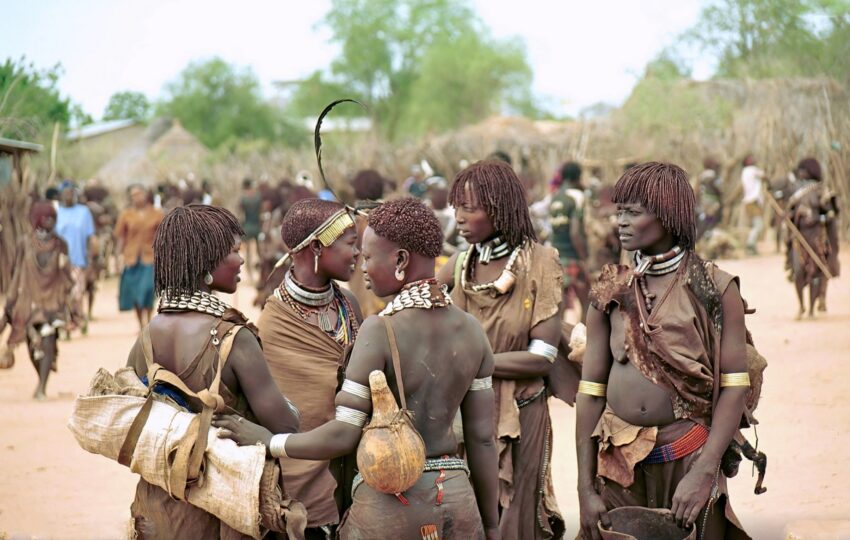 In the heart of the Ethiopian wilderness lies the mystical Omo Valley, where time seems to stand still, and ancient traditions thrive amidst the rugged landscape. In this remote corner of the world, diverse tribes coexist, each with its own rich culture and customs. Among these tribes is the Hamar, known for their striking adornments of colorful beads and elaborate body paint. Their village is a lively spectacle of communal living, where laughter fills the air and children play freely in the dusty streets.